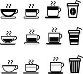 Kubki i kubki z gorącym napojem, zestaw czarnych ikon linii na przezroczystym tle. Ilustracja wektora.