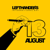 Typografia na międzynarodowy dzień Lefthandra z lewą ręką chwytającą ilustrację wektora pióra.