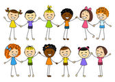 kreskówka szczęśliwy dzieci, karteczki. Ilustracja wektorowa.
