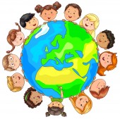 słodkie dzieci na całym świecie. Ilustracja wektorowa.