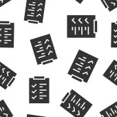 Ikona listy kontrolnej dokumentów w płaskim stylu. Zgłaszać ilustrację wektora na białym tle. Arkusz papieru płynny wzór koncepcji biznesowej.