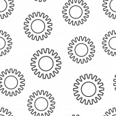 Ikona wektora biegów w płaskim stylu. Ilustracja koła zębatego na białym odizolowanym tle. Koło zębate zębate bezszwowa koncepcja biznesu wzór.