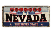 Witamy w Nevada vintage zardzewiały znak metalu na białym tle, wektor ilustracji