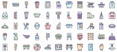 Linia rolnicza i wypełnić styl ikona zestaw wektor projekt