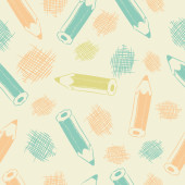 Ołówek i gumka na zielonym tle. Papier piśmienny bezszwowy wzór do tapety, papieru do pakowania, śpiocha, płytek kąpielowych, odzieży lub pościeli Etui na telefon lub tkaniny druku. Ilustracja wektor stylu Doodle