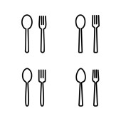 Zestaw ikon restauracji. Widelec, łyżka i ikona noża. ikona jedzenia. Jedz.