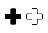Zestaw ikon Plus. Dodaj ikonę plus. Znak dodawania. Ikona medyczna Plus