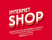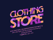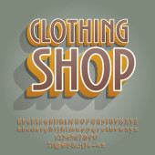 Sklep odzieżowy Vector Denim Emblem. Niebieska czcionka z żółtymi szwami. Litery i numery alfabetu jeansowego