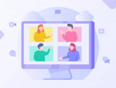 Materiały prezentacyjne dla nauczycieli poprzez wideo na ekranie komputera Koncepcja kursu cyfrowego z płaskim stylu wektor projektowania