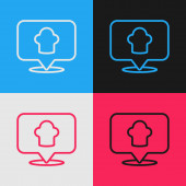 Pop linii sztuki Chef kapelusz ikona izolowane na tle koloru. Symbol gotowania. Kapelusz kucharza. Wektor.