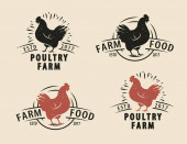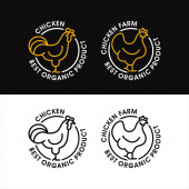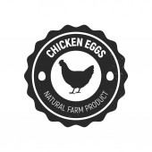 Ekologiczna etykieta kurczaka. Etykieta hodowli drobiu do pakowania jaj lub mięsa. Odznaka wolnego strzelca. Ilustracja wektora z kurą w okrągłej pieczęci.