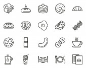 Zestaw odizolowanych ilustracji wektora żywności w stylu zarysu. Ikona restauracji zestaw logo, web, strona lądowania, naklejki i tło