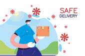 mężczyzna z maską twarzy odbierający bezpieczne przesyłki
