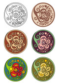 Zestaw wektorowy kółek z etnicznymi elementami kwiatowymi