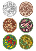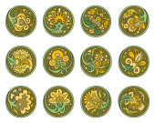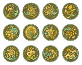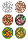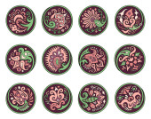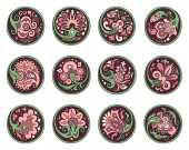 Zestaw wektorowy kółek z etnicznymi elementami kwiatowymi