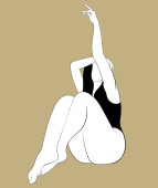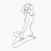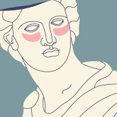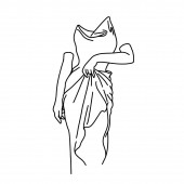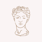 Wektor ręcznie rysowane płaską ilustrację kobiety z draperii i zabytkowej głowy Apollo izolowane. Sztuka tatuażu. Szablon na wizytówkę, plakat, baner, nadruk na t-shirt, pin, odznakę, łatkę.