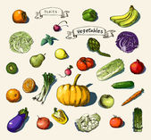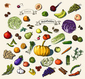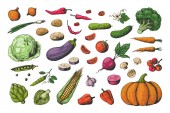 wektor ilustracja zestawu ręcznie malowane warzywa, owoce