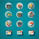 zestaw nowoczesny projekt płaski ikony pojęcie na temat marketingu. ikony dla marketingu internetowego, projektowania, rozwoju, fotografii, badania rynku, sieci społecznych, planowanie, pomysły, burza mózgów, kreatywność.