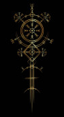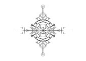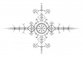 Magia starożytnych Viking art deco, Vegvisir magia nawigacja kompas starożytny. Wikingowie używali wielu symboli zgodnie z mitologią nordycką, powszechnie stosowaną w społeczeństwie wikingów. Logo ikona Wiccan znak ezoteryczny