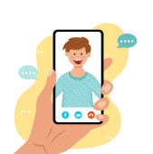 Mężczyzna rozmawia przez smartfona. Płaska kreskówka styl projektowania. Ilustracja wektora.