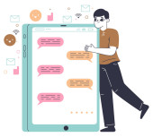 Zdjęcie "Mężczyzna rozmawia przez smartfona. Płaska kreskówka styl projektowania. Ilustracja wektora." może być wykorzystywane do celów osobistych i komercyjnych zgodnie z warunkami zakupionej licencji Royalty-free. Obraz jest dostępny do pobrania w jakości wysokiej rozdzielczości do 5760x3840.