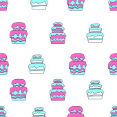 Zdjęcie "Kolorowe pączki z kreskówek. Płynny wzór. Ilustracja wektora izolowana na różowym tle." może być wykorzystywane do celów osobistych i komercyjnych zgodnie z warunkami zakupionej licencji Royalty-free. Obraz jest dostępny do pobrania w jakości wysokiej rozdzielczości do 5760x3840.