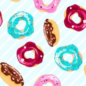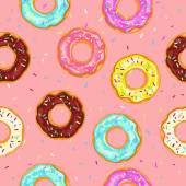 Kolorowe pączki z kreskówek. Płynny wzór. Ilustracja wektora izolowana na różowym tle.
