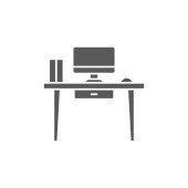 Biuro biurko wektor ikona symbol obszaru roboczego izolowane na białym tle