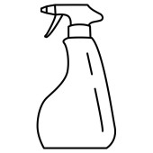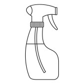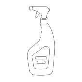 Linia rysunek styl ilustracja dezynfekcji butelki spray z zatrzymać pandemiczny znak wirusa oglądane z boku na izolowanym białym tle.