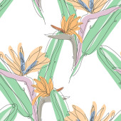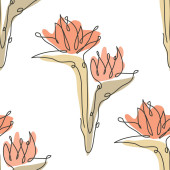 Elegancki bezszwowy wzór z tęczówki, tulipan, potwór, elementy konstrukcyjne. Kwiatowy wzór na zaproszenia, karty, nadruk, opakowanie na prezent, produkcja, tekstylia, tkaniny, tapety. Ciągły styl sztuki linii