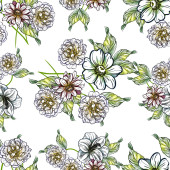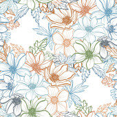Zdjęcie "Elegancki bezszwowy wzór z rumianku kwiaty, elementy projektu. Kwiatowy wzór na zaproszenia, karty, nadruk, opakowanie na prezent, produkcja, tekstylia, tkaniny, tapety. Ciągły styl sztuki linii" może być wykorzystywane do celów osobistych i komercyjnych zgodnie z warunkami zakupionej licencji Royalty-free. Obraz jest dostępny do pobrania w jakości wysokiej rozdzielczości do 5760x3840.