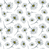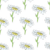 Elegancki bezszwowy wzór z rumianku kwiaty, elementy projektu. Kwiatowy wzór na zaproszenia, karty, nadruk, opakowanie na prezent, produkcja, tekstylia, tkaniny, tapety. Ciągły styl sztuki linii