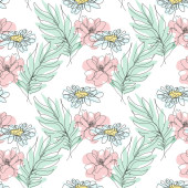 Elegancki bezszwowy wzór z rumianku kwiaty, elementy projektu. Kwiatowy wzór na zaproszenia, karty, nadruk, opakowanie na prezent, produkcja, tekstylia, tkaniny, tapety. Ciągły styl sztuki linii
