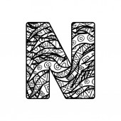 Wektorowa abstrakcyjna litera N z ozdobnym wzorem. Znaki kreskówki