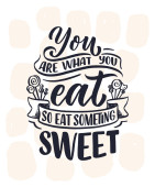 Jesteś tym, co jesz ręcznie rysowane nowoczesnej kaligrafii pędzla atramentowego. Ręczna kartka wektorowa z elementem typograficznym do kartek okolicznościowych, dekoracji, nadruków i plakatów