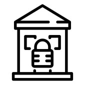 Zdjęcie "Zamknięty bank z ikoną blokady cienkiej linii, Koncepcja bankowa, łańcuchy w budynku znak na białym tle, bank zamknięty na zamek z ikoną łańcuchów w stylu konturu dla telefonów komórkowych i sieci web. Grafika wektorowa." może być wykorzystywane do celów osobistych i komercyjnych zgodnie z warunkami zakupionej licencji Royalty-free. Obraz jest dostępny do pobrania w jakości wysokiej rozdzielczości do 5760x3840.