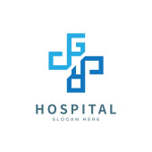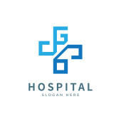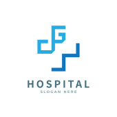 Logo zdrowia z początkową literą GJ, JG, G J projekt koncepcji logo. Wzór logo opieki zdrowotnej.