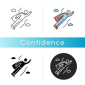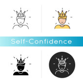 Pewność siebie czarna ikona glifu. Uczucie nadmiernej pewności siebie, narcyzm. Arogancki symbol sylwetki na białej przestrzeni. Pewna siebie, egoistyczna osoba w wektorze korony odizolowana ilustracja