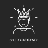 Pewność siebie czarna ikona glifu. Pewność siebie, pozytywne nastawienie, determinacja symbolu sylwetki na białej przestrzeni. Uczucie pewności siebie. Latająca osoba, wektor superbohatera odizolowana ilustracja