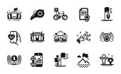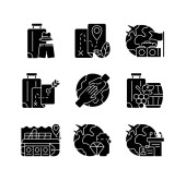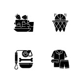 Wycieczka wakacyjna czarne ikony glifów ustawione na białej przestrzeni. Aktywna turystyka, przygoda i symbole sylwetki podróży. Różne atrakcje turystyczne w czasie wakacji. Ilustracja izolowana wektora