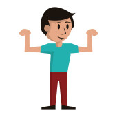 Zdjęcie "Kreskówkowy mięśniak. Zabawny sportowiec. Szczęśliwy człowiek dumnie pokazuje swoje mięśnie w silnych ramionach." może być wykorzystywane do celów osobistych i komercyjnych zgodnie z warunkami zakupionej licencji Royalty-free. Obraz jest dostępny do pobrania w jakości wysokiej rozdzielczości do 5760x3840.