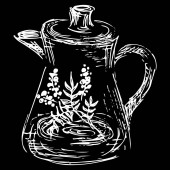 Ręcznie rysowane herbaty czajnik ilustracja w stylu grawerowania dla menu lub kawiarni. Wektor Arabski dzbanek kawy. Antyczny arabski czajniczek. Ręcznie rysowane szkice ilustracji bazgrołów. Arabski vintage styl.