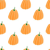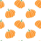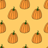Płynny wzór pomarańczowych dyń. Tło i faktura. Symbol jesień, zbiory, owocny rok, Święto Dziękczynienia. Ręcznie rysowany wektor EPS10 ilustracja zarysu, izolowane.