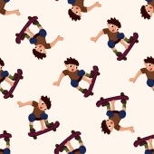 Dziewczyny jeżdżące na deskorolce wektor bezszwowy wzór. Dwie młode kobiety na deskorolce, zielone kaktusy wokół tekstury. Lato jest zabawne. Projekt na tekstylia, papier pakowy, tło internetowe, okładka, tapeta.