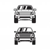sylwetka Pickup truck na białym tle do znakowania pojazdów. Widok z boku i z przodu