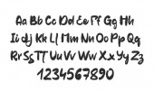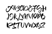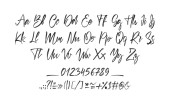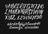 Ręcznie pisana pędzelka kaligraficzna Font. Angielskie litery alfabetu na białym tle. Liczba i interpunkcja.