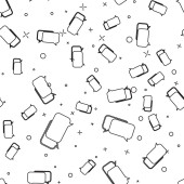 Czarna linia Ikona termosu pojemnik odizolowany bezszwowy wzór na białym tle. Ikona termowizyjna. Sprzęt kempingowy i turystyczny. Ilustracja wektora.
