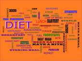 Obiad słowo przedstawione na tle chmury tekstu, który jest związany ludzkie ciało fakty żywieniowe.