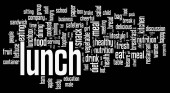 Obiad słowo wyświetlane dla żywności związane fakt ludzkiego ciała na chmury tekstowe ilustracja edukacyjne tło.