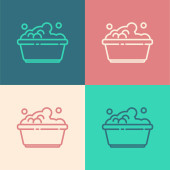 Zdjęcie "Zestaw Plastikowa umywalka z ikoną piór mydlanych izolowana na czarno-białym tle. Miska z wodą. Ubrania do prania, środki czystości. Ilustracja wektora." może być wykorzystywane do celów osobistych i komercyjnych zgodnie z warunkami zakupionej licencji Royalty-free. Obraz jest dostępny do pobrania w jakości wysokiej rozdzielczości do 5760x3840.